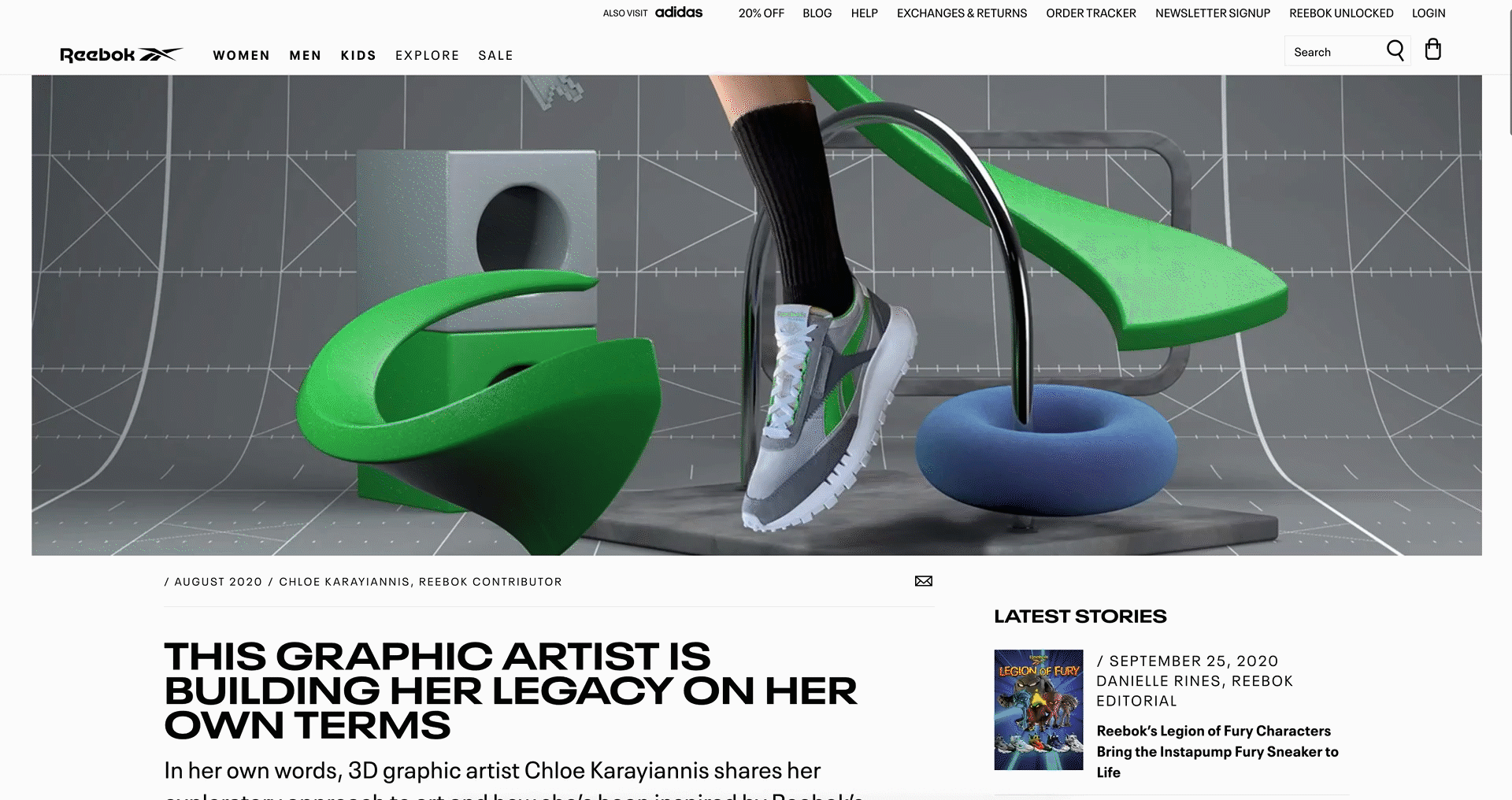 I was commissioned by Reebok to be featured as a Creator in their 2020 #WriteYourLegacy campaign. The campaign presented a series of inspirational artists and creators working with the sneaker as an art piece. We were to create a series of stills and videos, whilst documenting our process. I was selected out of 15 to be featured for an interview and highlight section.